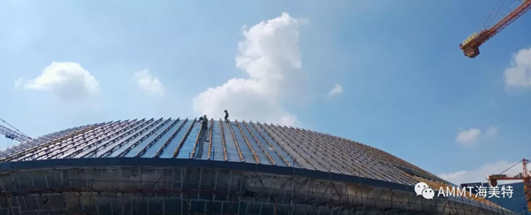 場館整體以“星際漩渦”為設(shè)計(jì)理念,總建筑面積約8萬方,擁有座位4087個(gè),其中以設(shè)計(jì)聚脲作為防水的區(qū)域面積為1.5萬平米。青島海洋新材料科技有限公司聚脲材料成為電競館屋頂防水唯一指定聚脲材料。